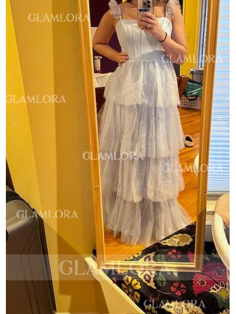 • A-line Elegant Straps Floor-Length Tulle Corset Bridesmaid Dress With Slit