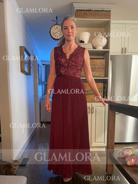 • A-line Endearing V-Neck Sleeveless Floor-Length Chiffon Mother of the Bride Dress With Lace