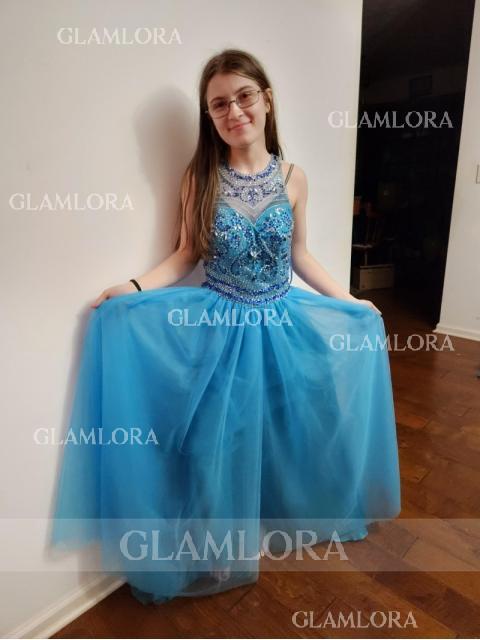 • A-line Jewel Graceful Sleeveless Sweep Train Tulle Dress With Beading