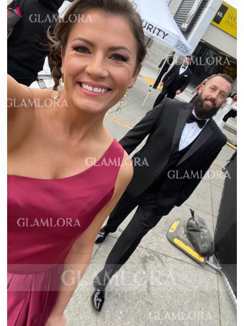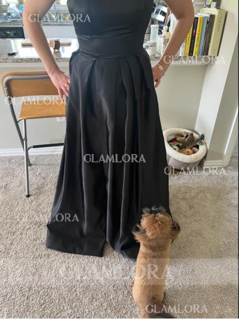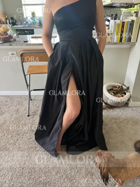 • A-line One-Shoulder Sleeveless Floor-Length Elegant Satin Dress With Slit