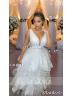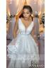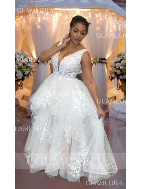 • A-line Princess Glam V-Neck Sleeveless Floor-Length Tulle Wedding Dress With Applique