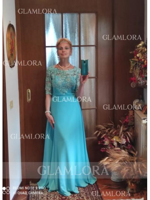• A-line Scoop 1/2 Sleeves Floor-Length Chiffon Charming Mother of the Bride Dress