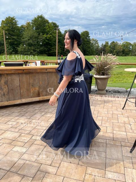 • A-line Straps 1/2 Sleeves Noble Floor-Length Chiffon Mother of the Bride Dress With Applique