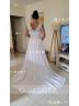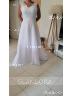 • A-line Stunning V-neck Sweep Train Chiffon Wedding Dress With Appliques Lace