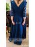 A-line V-Neck 3/4 Sleeves Floor-Length Satin Regal Mother of the Bride Dress With Beading