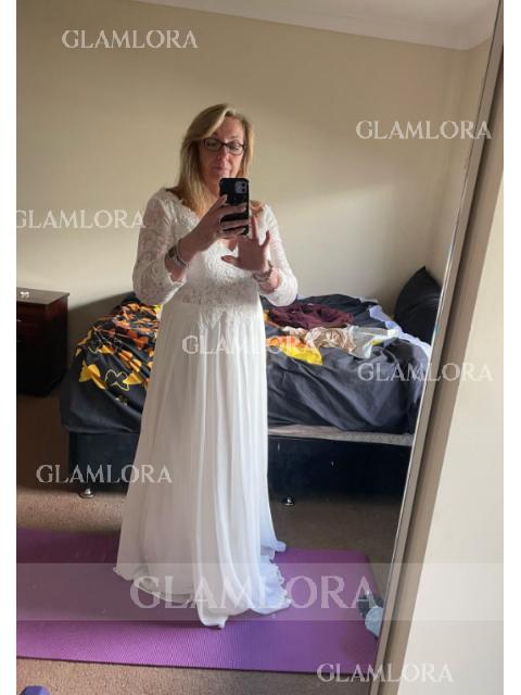 • A-line V-Neck 3/4 Sleeves Timeless Floor-Length Chiffon Wedding Dress With Applique