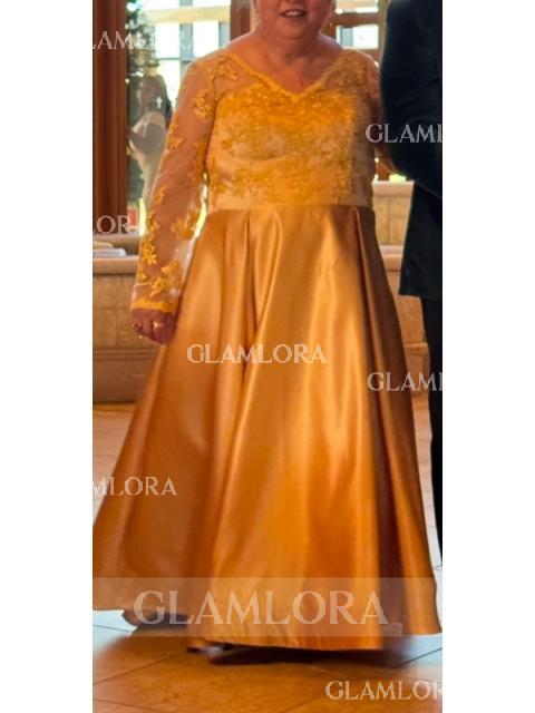 A-line V-Neck Long Sleeves Sweep Train Immaculate Satin Mother of the Bride Dress