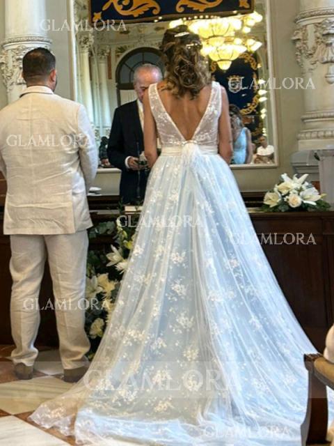 • A-line V-Neck Sleeveless Floor-Length Stunning Tulle Dress With Beading