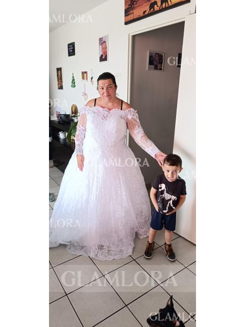 • Ball-Gown Gorgeous Bateau Long Sleeves Floor-Length Lace Wedding Dress