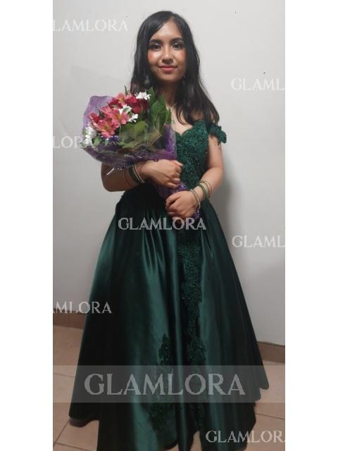 • Ball-Gown Gorgeous Off-the-Shoulder Sleeveless Floor-Length Satin Dress With Lace