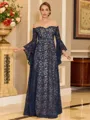 This elegant mother of the bride dress features a flattering A-line silhouette that complements all body types. The off-the-shoulder neckline and long sleeves provide a sophisticated and graceful look, while delicate lace detailing adds timeless charm. The floor-length design flows beautifully, and the built-in corset ensures structured support for a flattering fit-perfect for weddings and formal occasions.
