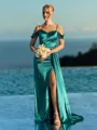 • Delicate Sheath Cold Shoulder Pleated Floor-Length Bridesmaid Dress