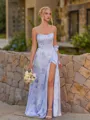 An elegant A-line bridesmaid dress designed with a straight sleeveless neckline and a fitted corset waist that accentuates the figure. It features a charming bow detail at the back, and a flowing floor-length skirt that creates a graceful and timeless silhouette, perfect for weddings, formal events, or special occasions.