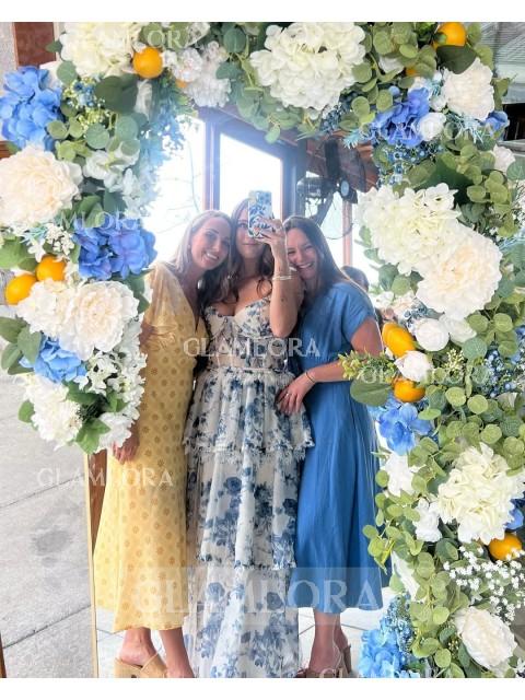 The A-line Sweetheart Sleeveless Cascading Ruffles Floor-Length Bridesmaid Dress with a Corset is a captivating and romantic choice for bridal parties. Featuring an A-line silhouette and a sweetheart neckline, this sleeveless dress exudes timeless charm and femininity. The cascading ruffles add movement and drama, creating an ethereal and whimsical look. The corset bodice not only enhances the waistline but also adds a touch of elegance and structure. Perfect for weddings or special occasions, this dress ensures bridesmaids stand out with grace and style, making a memorable impression throughout the celebration.