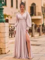 • Exquisite A-Line Chiffon Ruffles V-Neck Long Sleeves Floor-Length Prom Dress