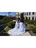 • Exquisite A-line Off-the-Shoulder Tulle Cathedral Train Corset Wedding Dress With Slit
