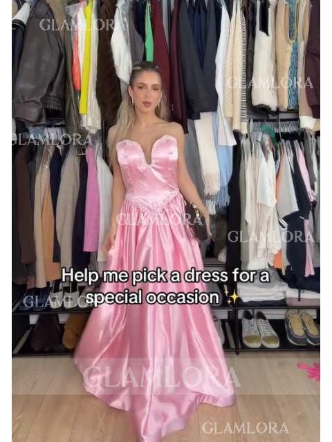 A graceful A-line dress with a sweetheart neckline and sleeveless design, crafted from silk like satin for a comfortable yet elegant fit. Beading accents add sparkle and sophistication, while the floor-length hem enhances the flowing silhouette. Ideal for formal events or special occasions.