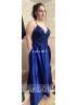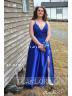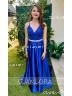 Fashion A-line V-Neck Sleeveless Sweep Train Silk like Satin Dress With Slit