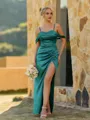 A sleek sheath bridesmaid dress featuring thin straps and a sleeveless design with delicate pleating. The fitted corset waist flatters the figure, while the floor-length skirt creates an elegant and timeless silhouette perfect for weddings and formal occasions.