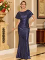 • Flattering Sheath Scoop Short Sleeves Pleated Floor-Length Sequins Corset Mother of the Bride Dress