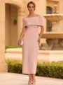 This sophisticated mother of the bride dress features a sleek sheath silhouette that flatters the figure. The square neckline and short sleeves provide an elegant and comfortable fit, while delicate beading adds a touch of sparkle. Crafted from stretch crepe, the tea-length design flows gracefully, and the built-in corset ensures structured support for a flattering shape-perfect for weddings and formal occasions.