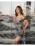 This stunning sheath dress features a chic off-the-shoulder design and a sleeveless silhouette, crafted from luxurious metallic satin that shimmers beautifully. The bodice is adorned with intricate beading, adding a touch of glamour and elegance. With a fitted corset structure and a graceful sweep train, this dress is perfect for formal occasions, effortlessly combining sophistication and style.