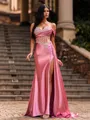 Graceful Sheath One-Shoulder Rhinestone Sweep Train Corset Prom Dress