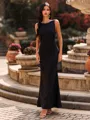 This sheath scoop sleeveless floor-length dress features a classic scoop neckline and a sleek, fitted silhouette. The flowing floor-length skirt creates an elegant and sophisticated look, perfect for weddings, formal events, or special occasions.