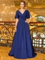 • Gracious A-line V-Neck Short Sleeves Pleated Sweep Train Jersey Mother of the Bride Dress