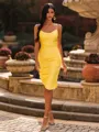 This sheath spaghetti straps sleeveless tea-length jersey dress features delicate pleating on the bodice for a soft and elegant look. Made from stretch jersey, the fitted silhouette and flowing tea-length hem create a comfortable yet sophisticated appearance, perfect for parties, homecoming, or special occasions.
