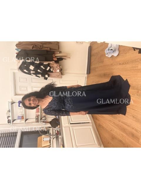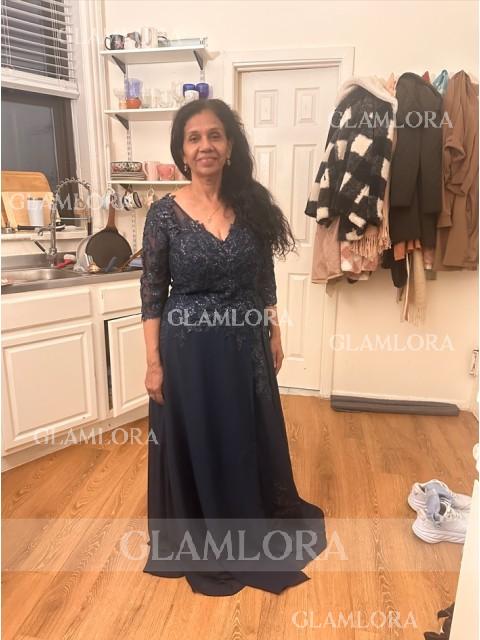 • Immaculate A-Line Chiffon Applique V-Neck 3/4 Sleeves Floor-Length Mother of the Bride Dress