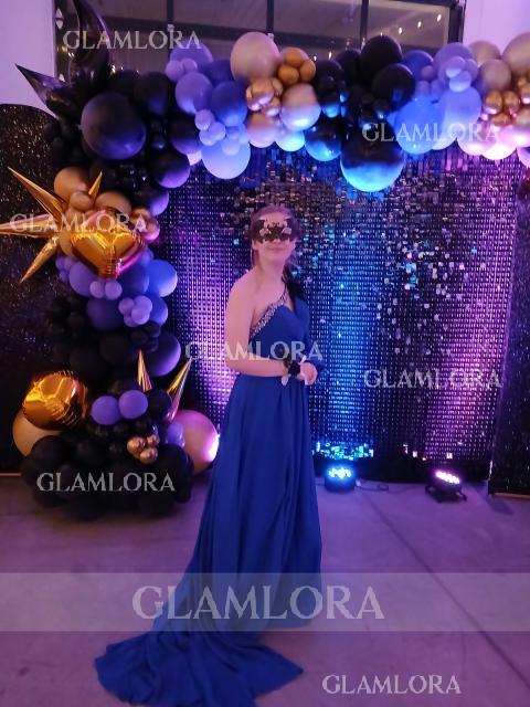 This elegant A-line dress features a stylish one-shoulder design with long sleeves, crafted from lightweight chiffon for a flowing silhouette. Adorned with intricate beading along the neckline and sleeve, it adds a touch of sparkle and sophistication. The sweep train enhances the graceful movement, making this dress perfect for formal events or special occasions.