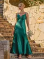 A graceful A-line bridesmaid dress featuring a V-neckline and sleeveless design with delicate pleating. Falling to an ankle-length hem, it creates an elegant and timeless silhouette perfect for weddings and special occasions.