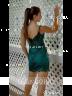 This alluring short/mini dress epitomizes glamour and sophistication with its sleek sheath silhouette and opulent details. Designed with a flattering V-neckline and sleeveless cut, it accentuates the neckline and shoulders beautifully. The dress is adorned with shimmering sequins that add a touch of sparkle and luxury to the ensemble. Crafted from silk-like satin, the fabric drapes elegantly and provides a smooth, luxurious feel against the skin. The corset-style bodice enhances the waistline, creating a flattering silhouette that complements various body types. Perfect for upscale events, cocktail parties, or formal occasions where statement-making style is essential, this dress ensures a stunning and memorable appearance.