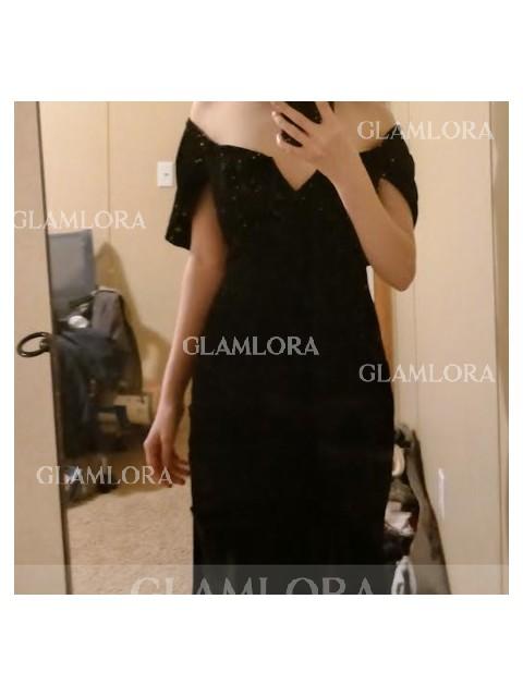 • Sheath/Column Off-the-Shoulder Sleeveless Sweep Train Mesmerizing Velvet Corset Dress With Sequins