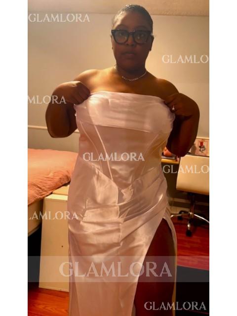 • Sheath/Column Off-the-Shoulder Stunning Silk like Satin Floor-Length Corset Wedding Dress With Slit