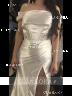 This wedding dress is a sheath silhouette with an off-the-shoulder neckline and sleeveless design, featuring delicate pleats. Crafted from silk like satin, the gown is enhanced with a corset and a sweep train, creating a sophisticated and timeless bridal ensemble.