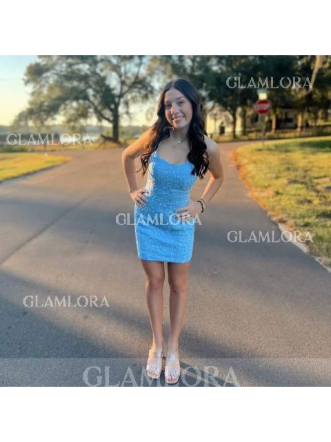 • Sheath/Column Spaghetti Straps Sleeveless Lace Perfect Short/Mini Dress