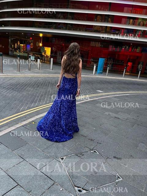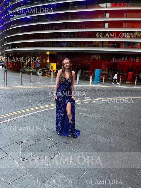 • Sheath/Column V-Neck Sleeveless Sweep Train Velvet Sequins Glistening Dress With Sequins
