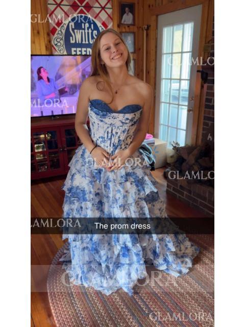 • Show-stopping A-line Sweetheart Cascading Ruffles Sweep Train Corset Dress