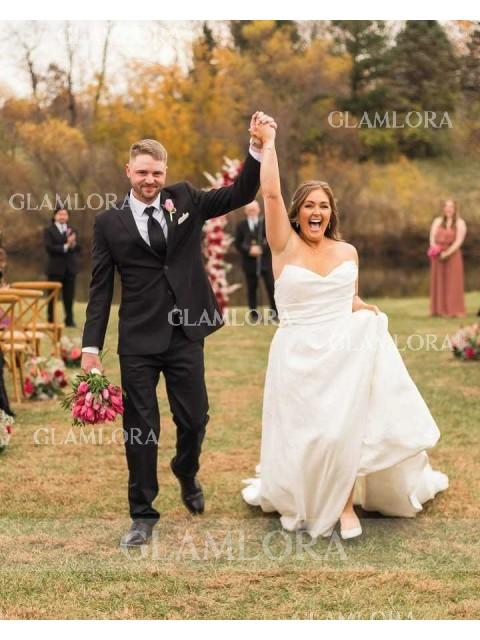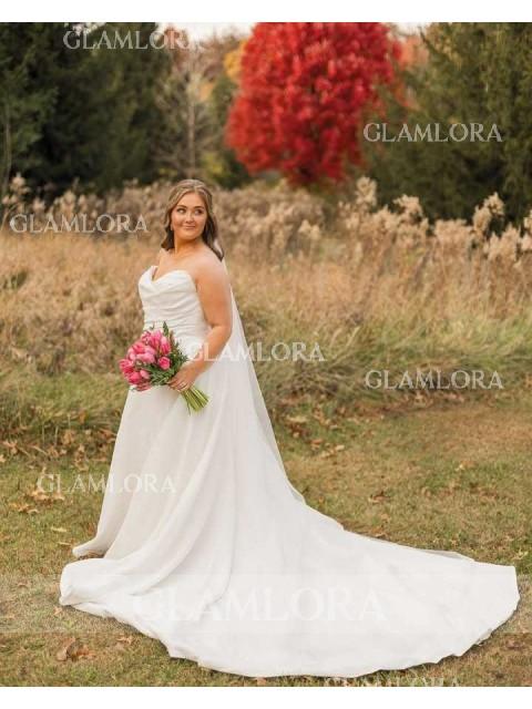 • Show-stopping A-line Sweetheart Chapel Train Satin Wedding Dress With Ruffles