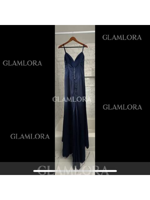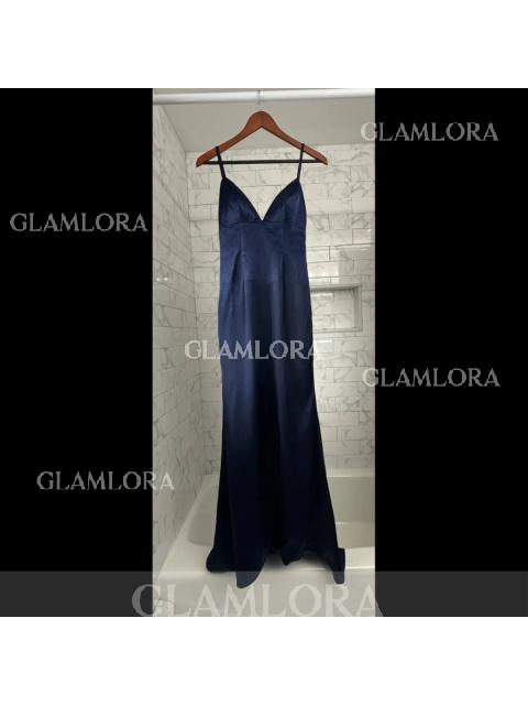 • Sleek Sheath/Column Spaghetti Straps Sleeveless Sweep Train Open Back Silk like Satin Dress