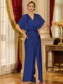 • Statuesque Sheath V-Neck Short Sleeves Pleated Floor-Length Jersey Mother of the Bride Dress