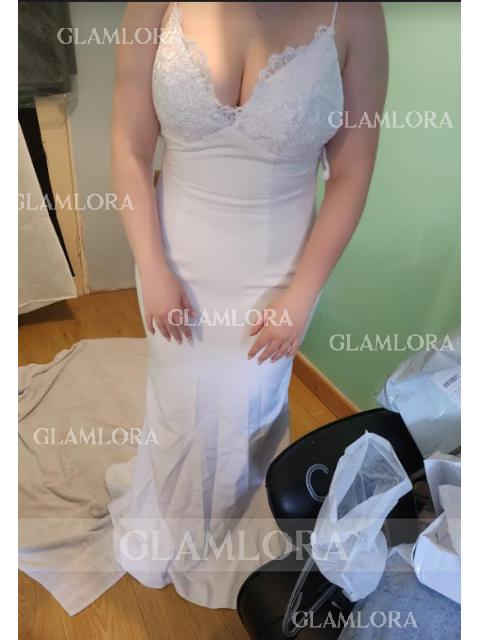 • Striking Trumpet/Mermaid Spaghetti Straps Sleeveless Sweep Train Open Back Stretch Crepe Wedding Dress With Lace