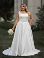 Stunning A-line Square Chapel Train Satin Plus Size Wedding Dress
