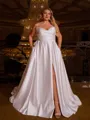 • Stunning A-line Sweetheart Pleated Sweep Train Satin Corset Plus Size Wedding Dress