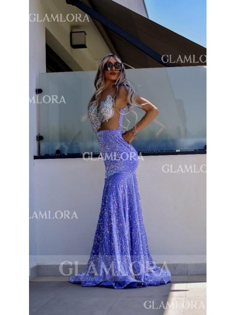 This glamorous mermaid dress features a scoop neckline and a sleeveless design, offering a sleek and modern look. Adorned with sparkling beading and sequins, the dress creates a dazzling effect that catches the light beautifully. Crafted from luxurious velvet, the fabric provides a rich, smooth texture that hugs the body, accentuating curves and creating a flattering silhouette. The sweep train adds a dramatic yet elegant touch, making this gown perfect for formal events or weddings. The combination of velvet, beading, sequins, and the mermaid silhouette exudes glamour and sophistication.