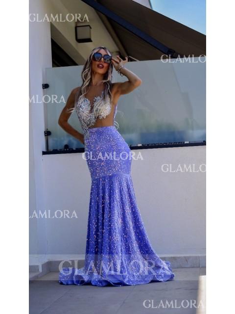 Stunning Mermaid Scoop Beading Sweep Train Velvet Sequins Dress