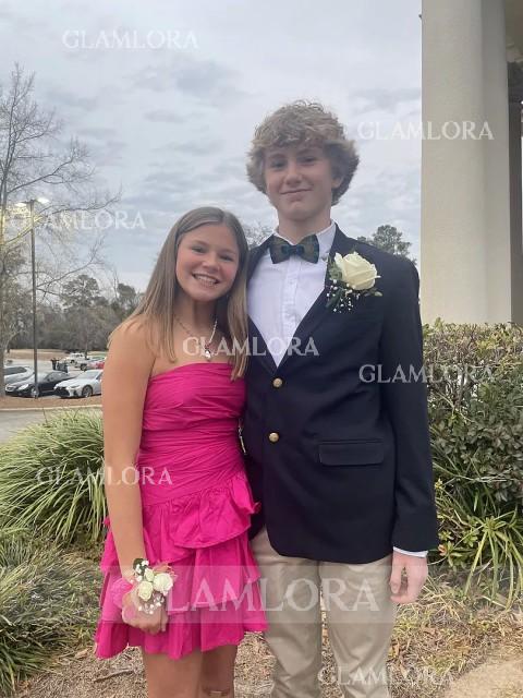• Timeless A-line Straight Cascading Ruffles Short/Mini Taffeta Dress