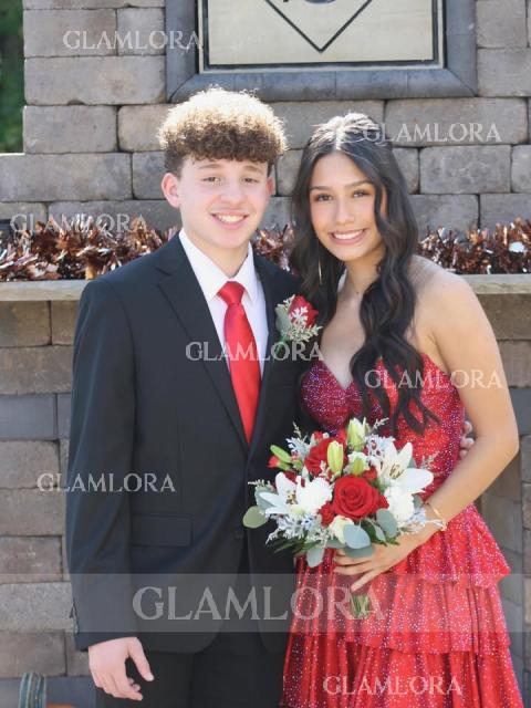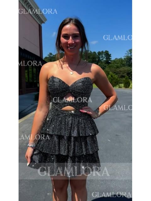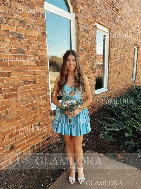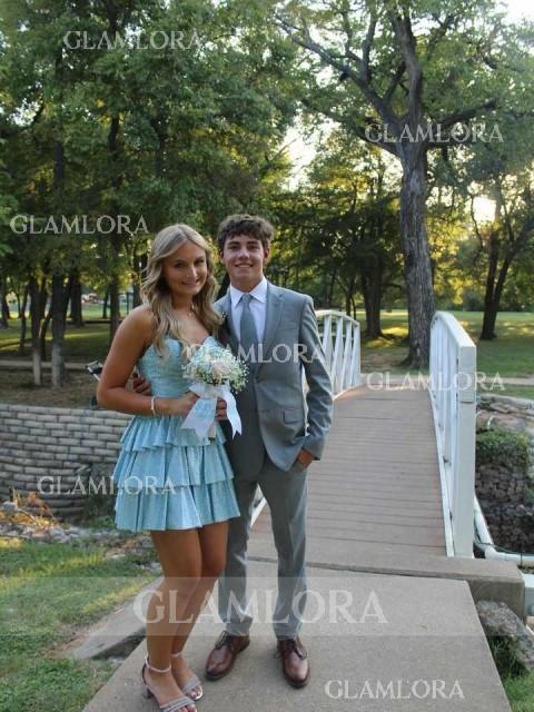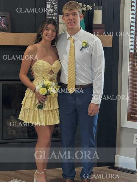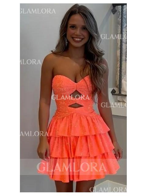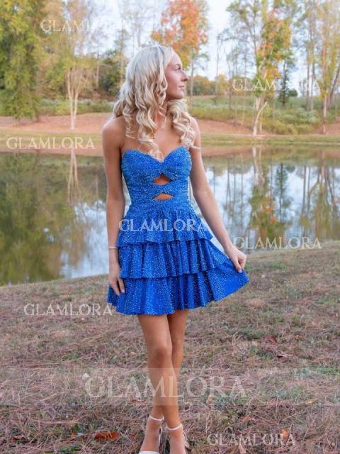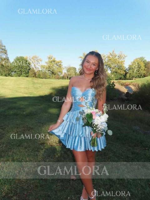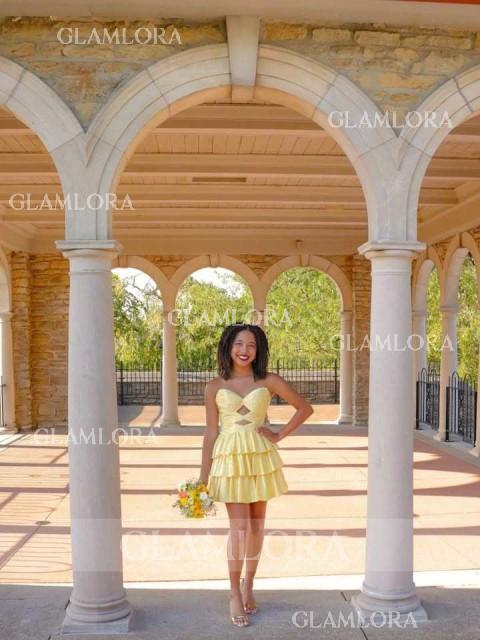 • Trendy A-Line Sweetheart Cascading Ruffles Short/Mini Corset Dress